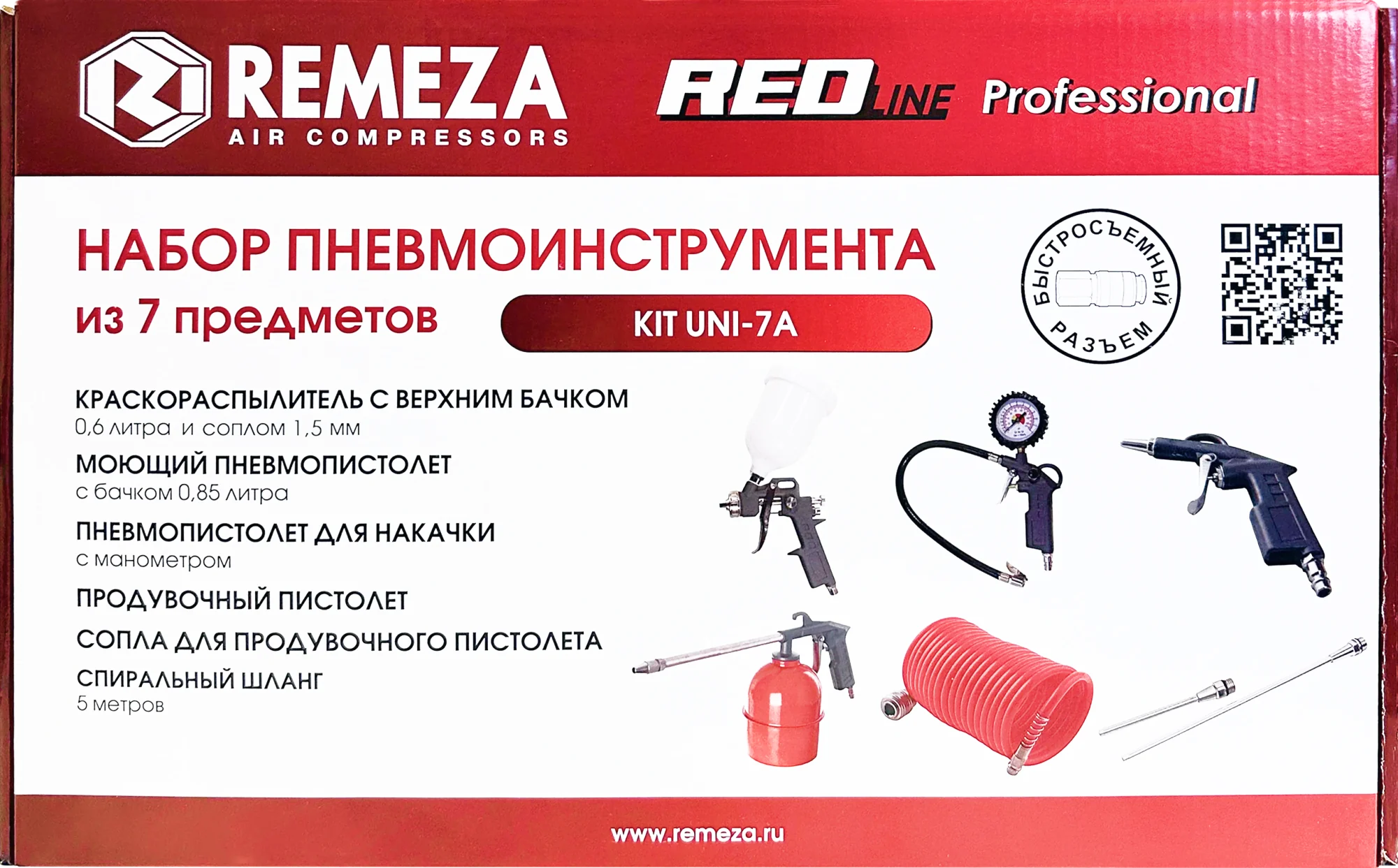 Все инструменты в наборах имеют быстросъёмное подключение, благодаря чему к спиральному шлангу можно быстро подключить любой инструмент и приступить к выполнению рабочей операции.